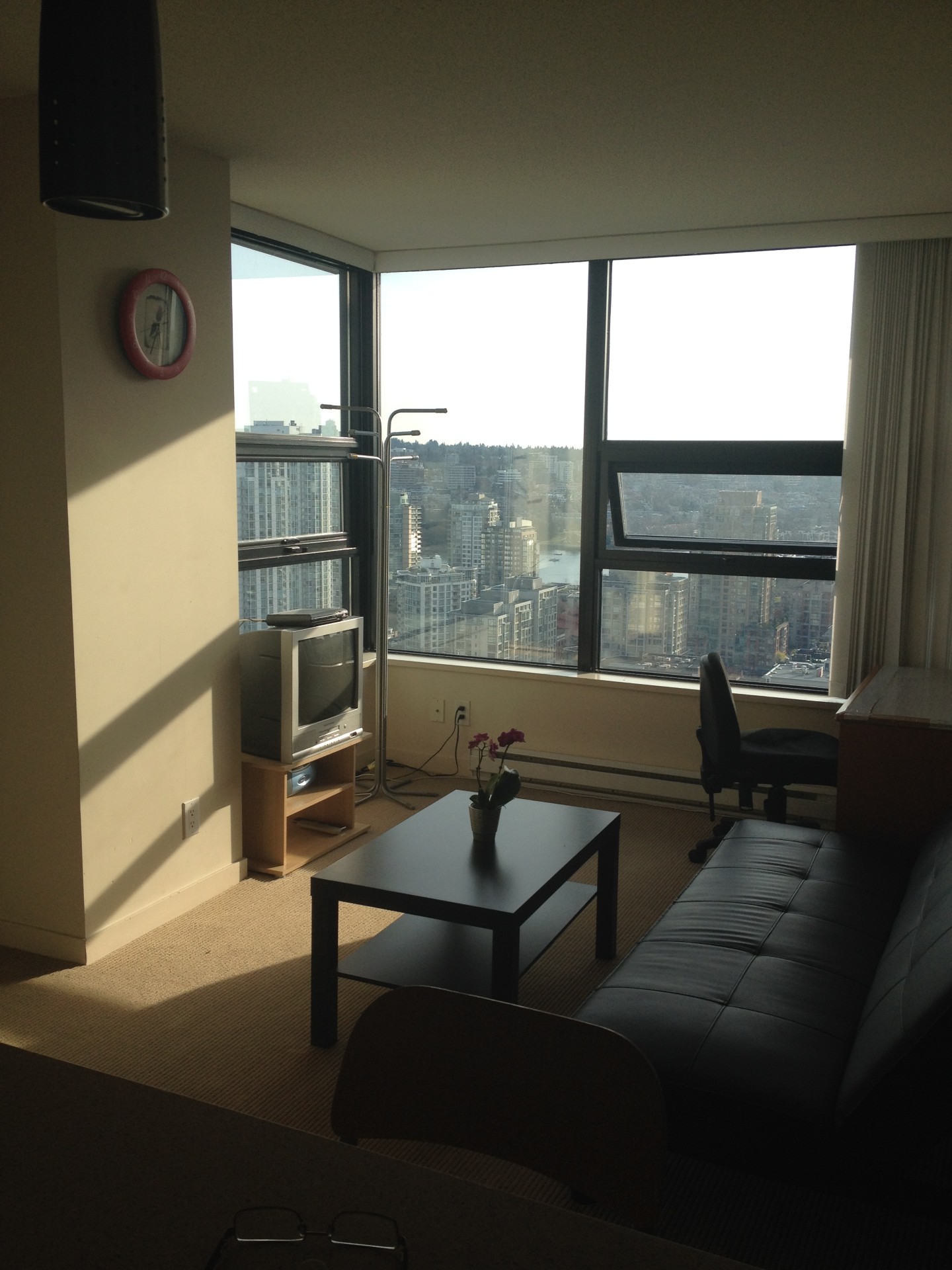 벤쿠버 다운타운의 주택가 예일타운에 위치한 view 가 아름다운 가구완비 29층 1bed+1den 콘도 입니다.